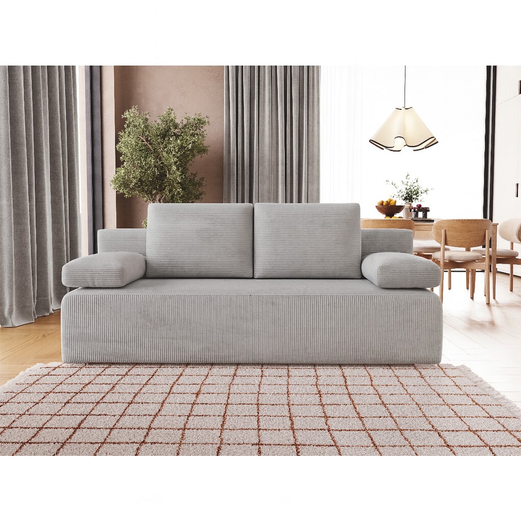 Kanapa bez boków ZOCA to nowoczesna, kompaktowa kanapa bez boków, zaprojektowana specjalnie z myślą o niewielkich wnętrzach. Doskonale sprawdzi się w kawalerkach, małych salonach, pokojach młodzieżowych czy gościnnych, oferując wygodne miejsce do codziennego odpoczynku i praktyczną funkcję spania. Mimo swoich niewielkich rozmiarów, ZOCA oferuje wszystko, czego potrzebujesz: rozkładaną powierzchnię spania 137 × 201 cm oraz pojemny schowek na pościel, który pomaga utrzymać porządek w pomieszczeniu.