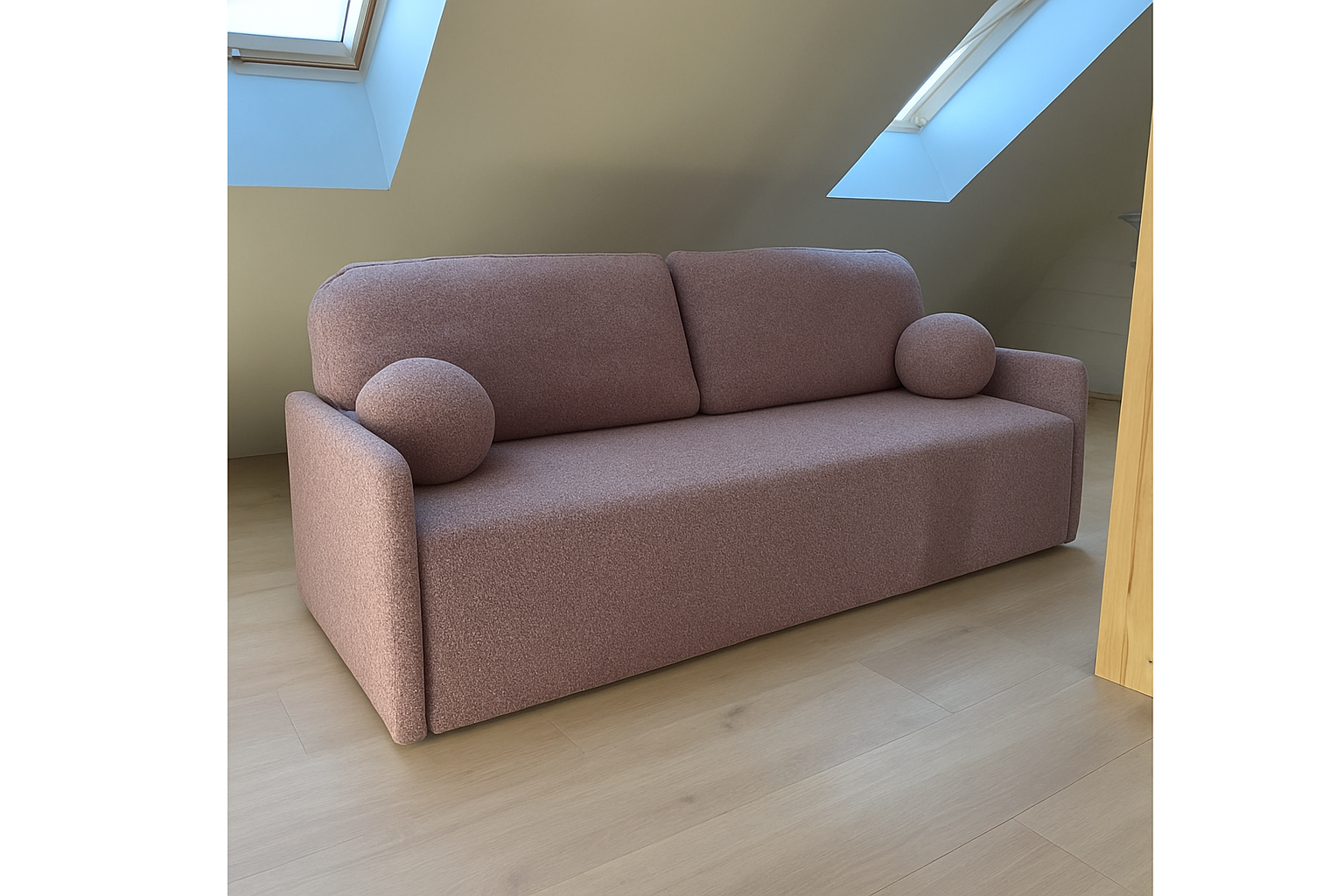 Jest to doskonały wybór do małego mieszkania, biura czy pokoju gościnnego dzięki swoim kompaktowym wymiarom:szerokość 206 cm, głębokość 87 cm i wysokość 90 cm. Głębokość siedziska wynosząca aż70 cm dlatego sprawia, że mebel jest idealny do spędzania wolnego czasu, oferując wyjątkowy komfort użytkowania. Kanapa Glov posiada funkcję spania, a po rozłożeniu jego powierzchnia wynosi 194×140 cm, co sprawia, że może służyć jako wygodne miejsce do spania. Dodatkowym atutem jest pojemnik na pościel, który pozwala na łatwe przechowywanie dodatkowych kołder i poduszek.