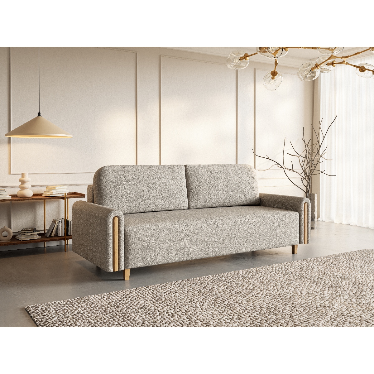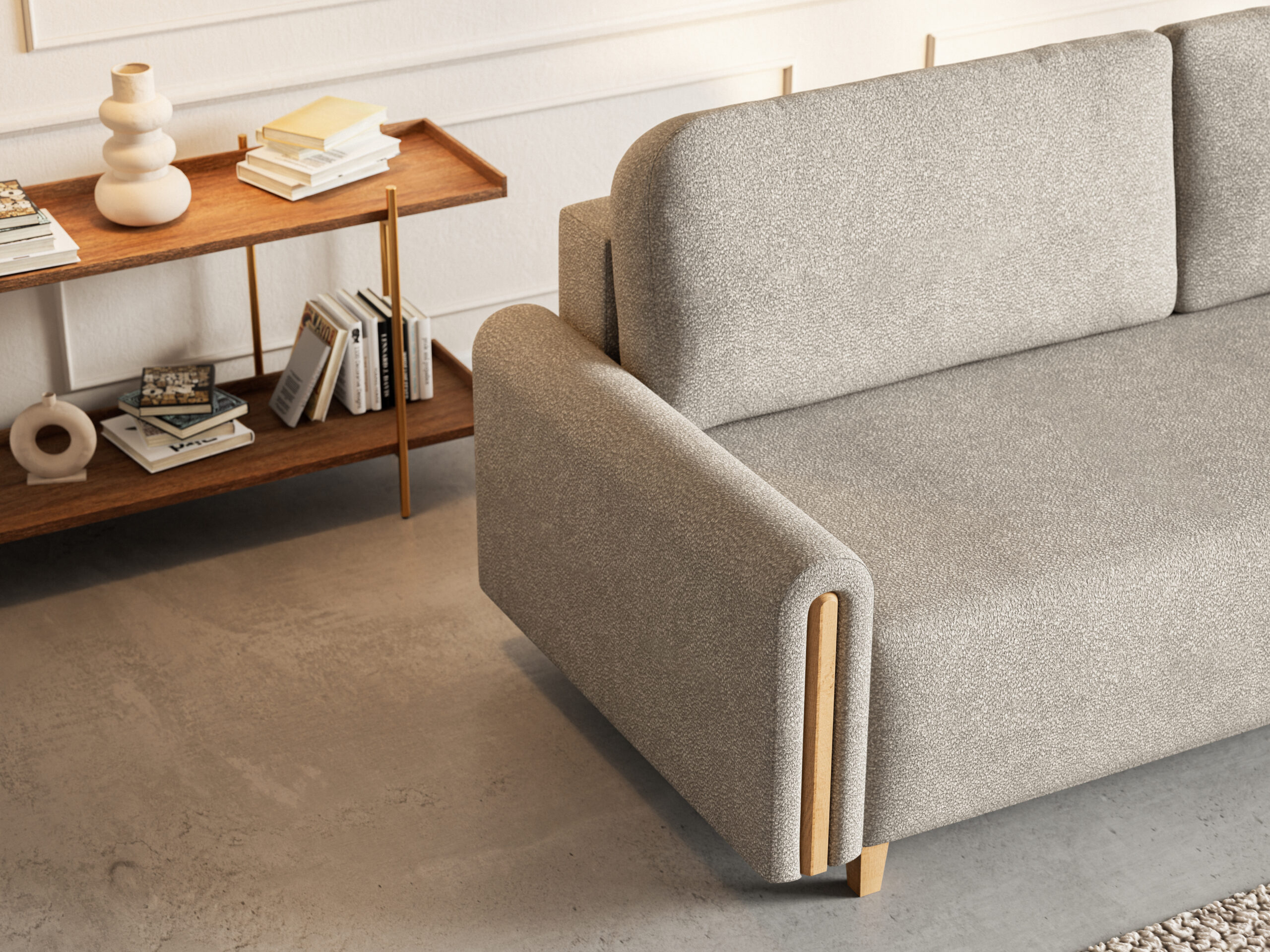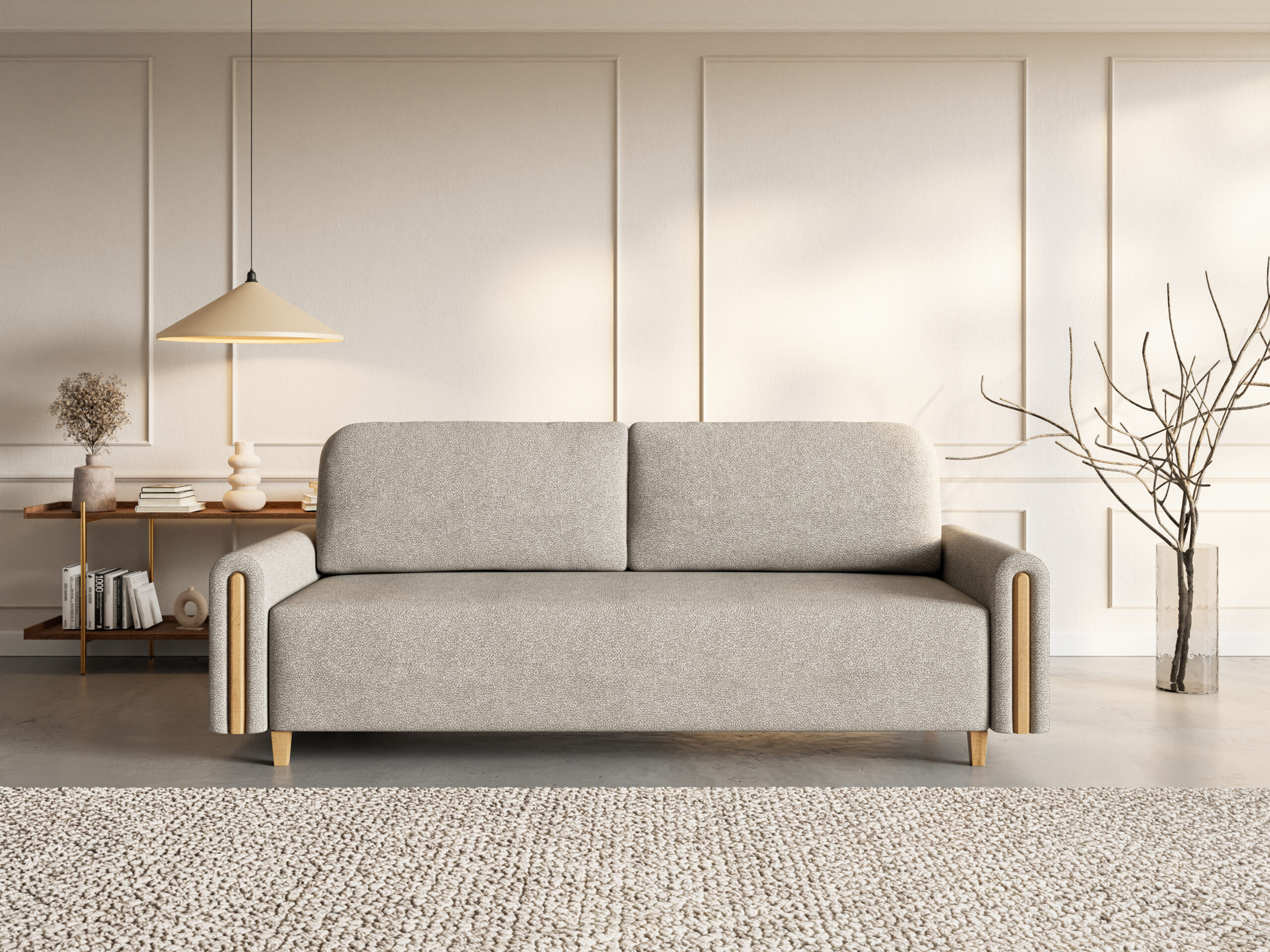 Kanapa rozkładana Madera to wyjątkowe połączenie elegancji, komfortu i praktyczności. Stworzone z myślą o wymagających użytkownikach. Ten stylowy mebel doskonale sprawdzi się w każdym wnętrzu – zarówno w przestronnych salonach, jak i bardziej kameralnych pokojach dziennych. Wyjątkowego charakteru sofie nadają pięknie wyprofilowane boczki ozdobione dekoracyjnymi listwami, które podkreślają jej elegancki styl. Klasyczne, delikatnie ścięte nóżki dodają lekkości i sprawiają, że cała konstrukcja prezentuje się niezwykle estetycznie. Wysoka jakość wykonania oraz starannie dobrane materiały gwarantują trwałość i wygodę na wiele lat. Kanapa ma funkcję spania oraz pojemnik na pościel.