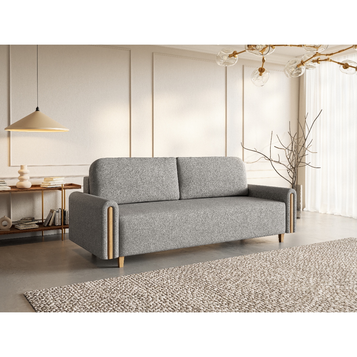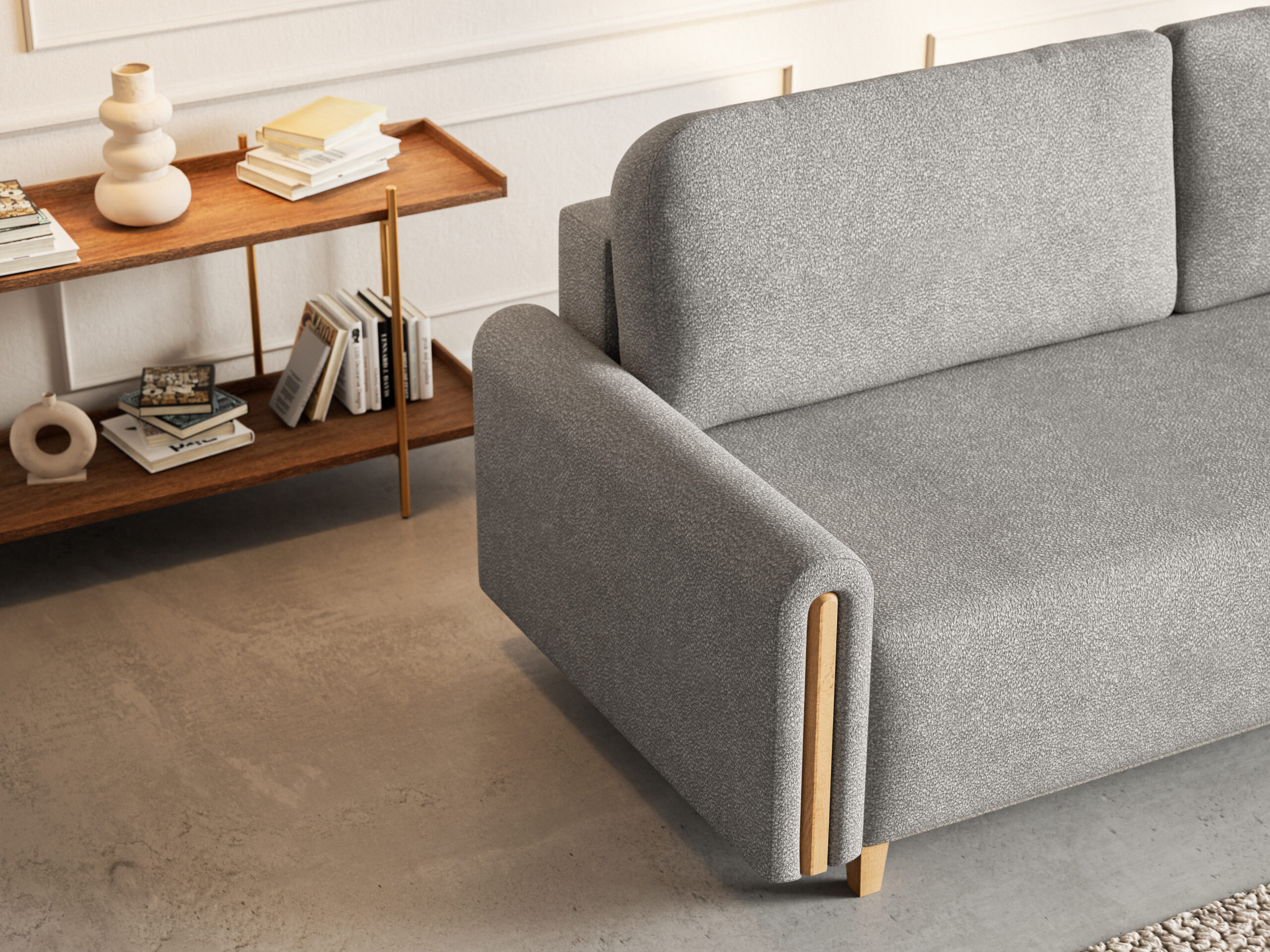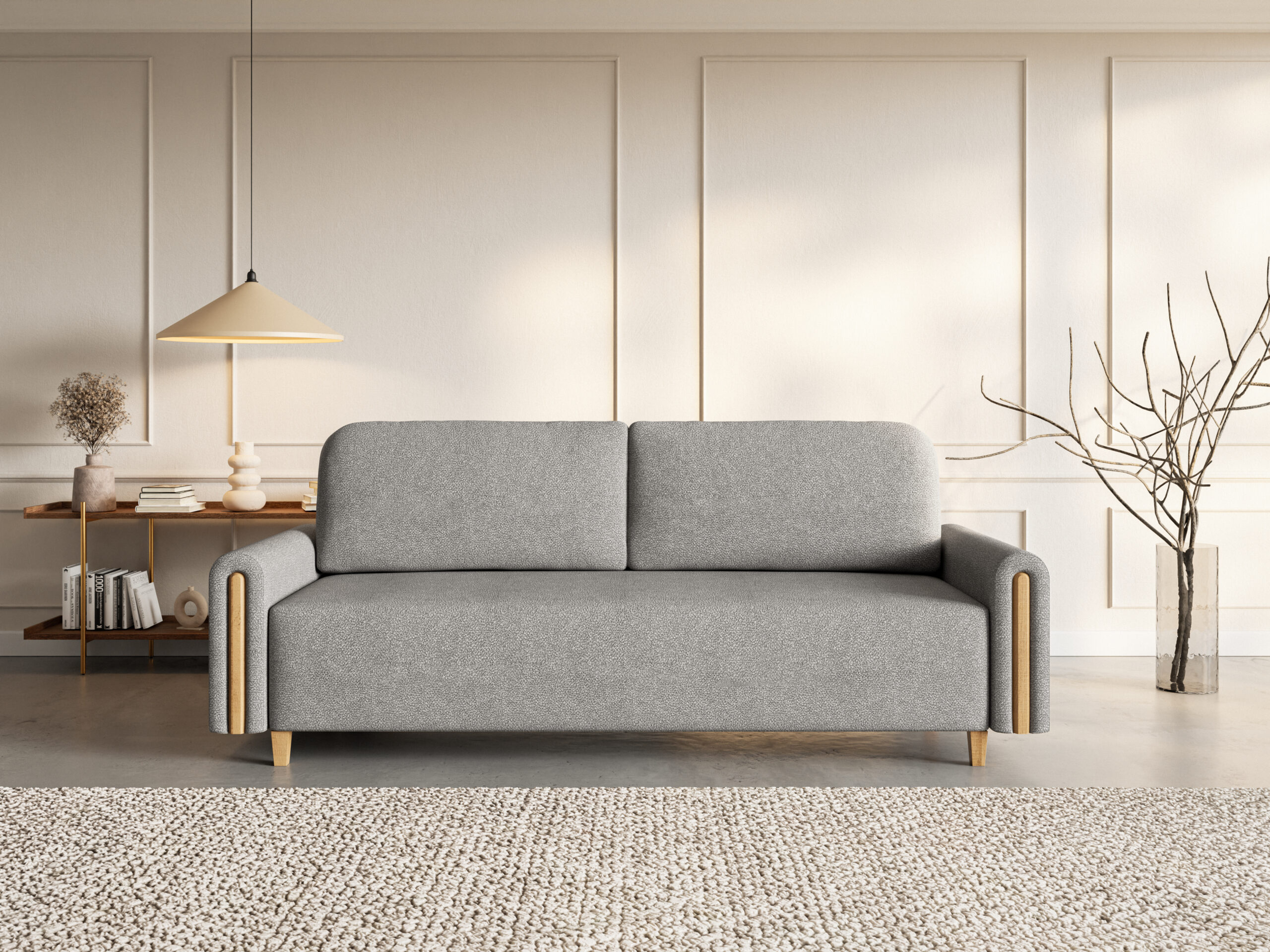Kanapa rozkładana Madera to wyjątkowe połączenie elegancji, komfortu i praktyczności. Stworzone z myślą o wymagających użytkownikach. Ten stylowy mebel doskonale sprawdzi się w każdym wnętrzu – zarówno w przestronnych salonach, jak i bardziej kameralnych pokojach dziennych. Wyjątkowego charakteru sofie nadają pięknie wyprofilowane boczki ozdobione dekoracyjnymi listwami, które podkreślają jej elegancki styl. Klasyczne, delikatnie ścięte nóżki dodają lekkości i sprawiają, że cała konstrukcja prezentuje się niezwykle estetycznie. Wysoka jakość wykonania oraz starannie dobrane materiały gwarantują trwałość i wygodę na wiele lat. Kanapa ma funkcję spania oraz pojemnik na pościel.
