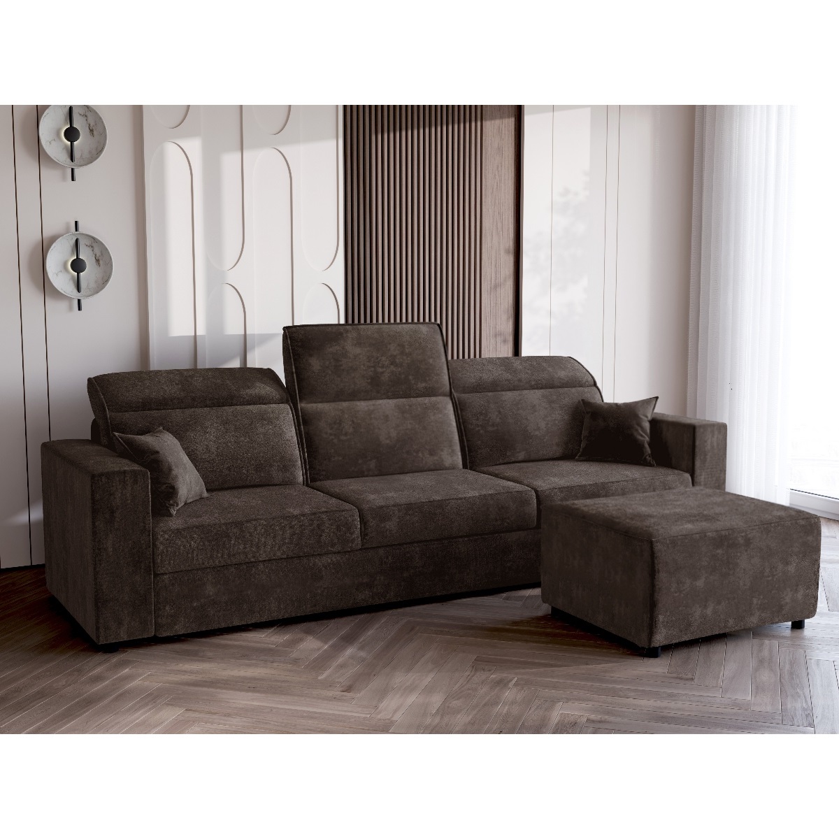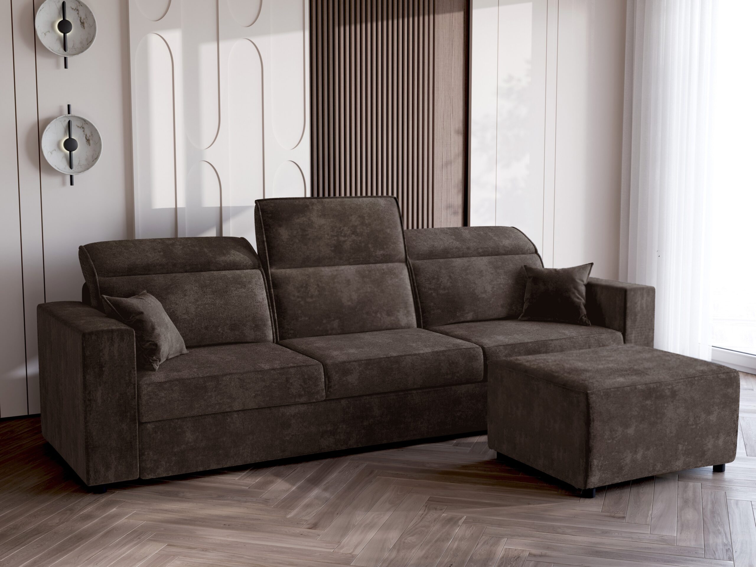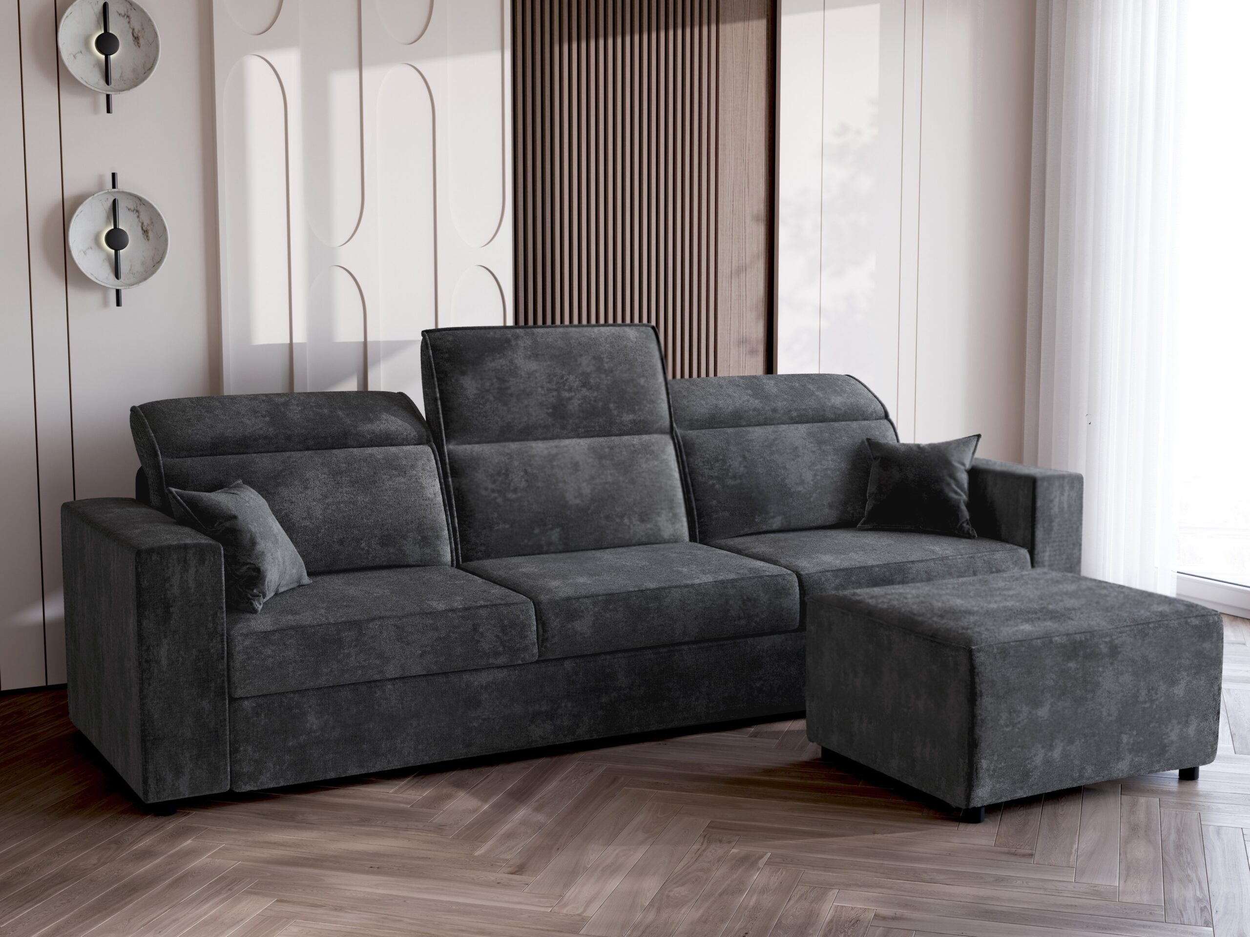— Sofa z pufą, regulowanymi zagłówkami i funkcją spania —
