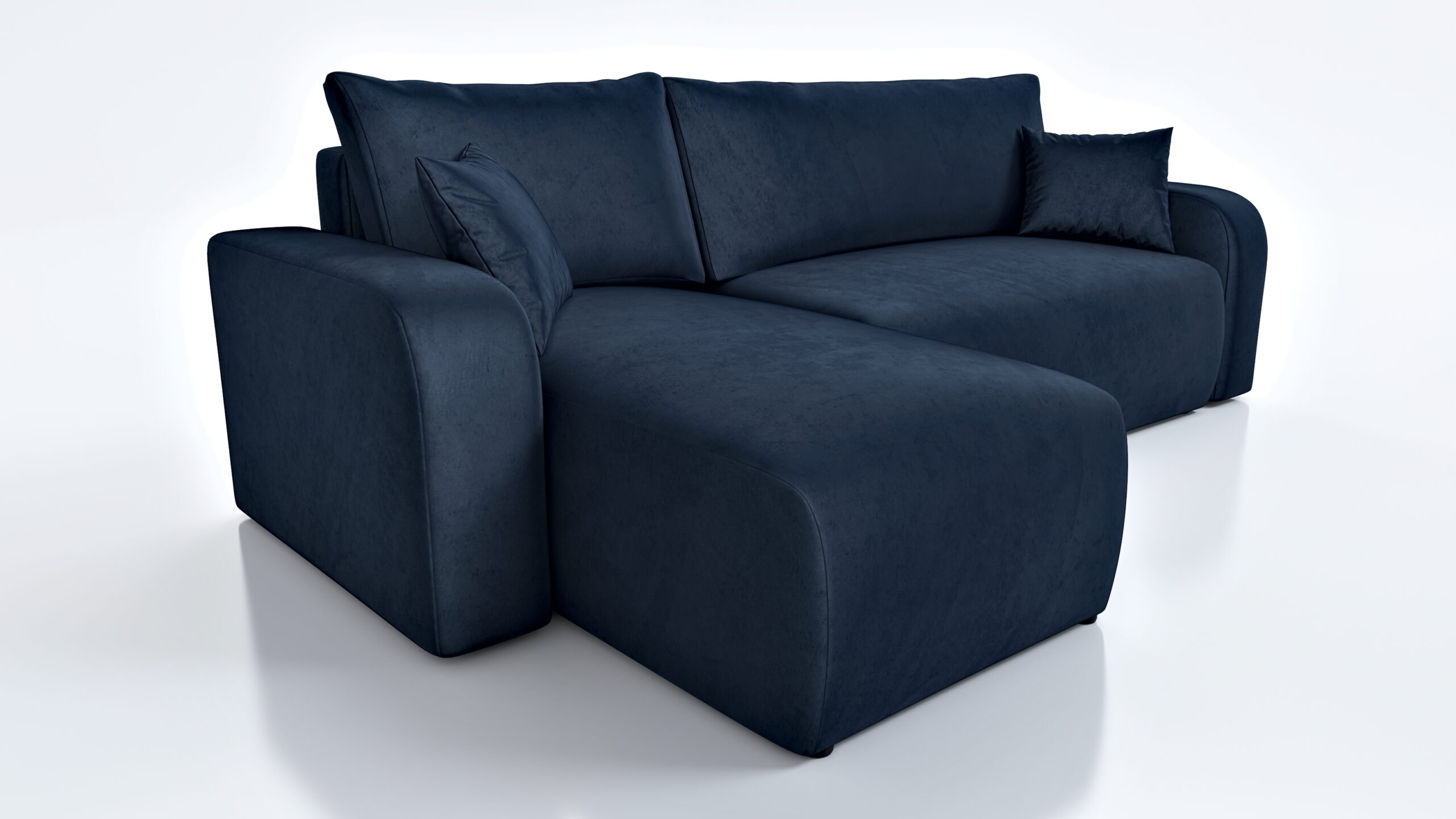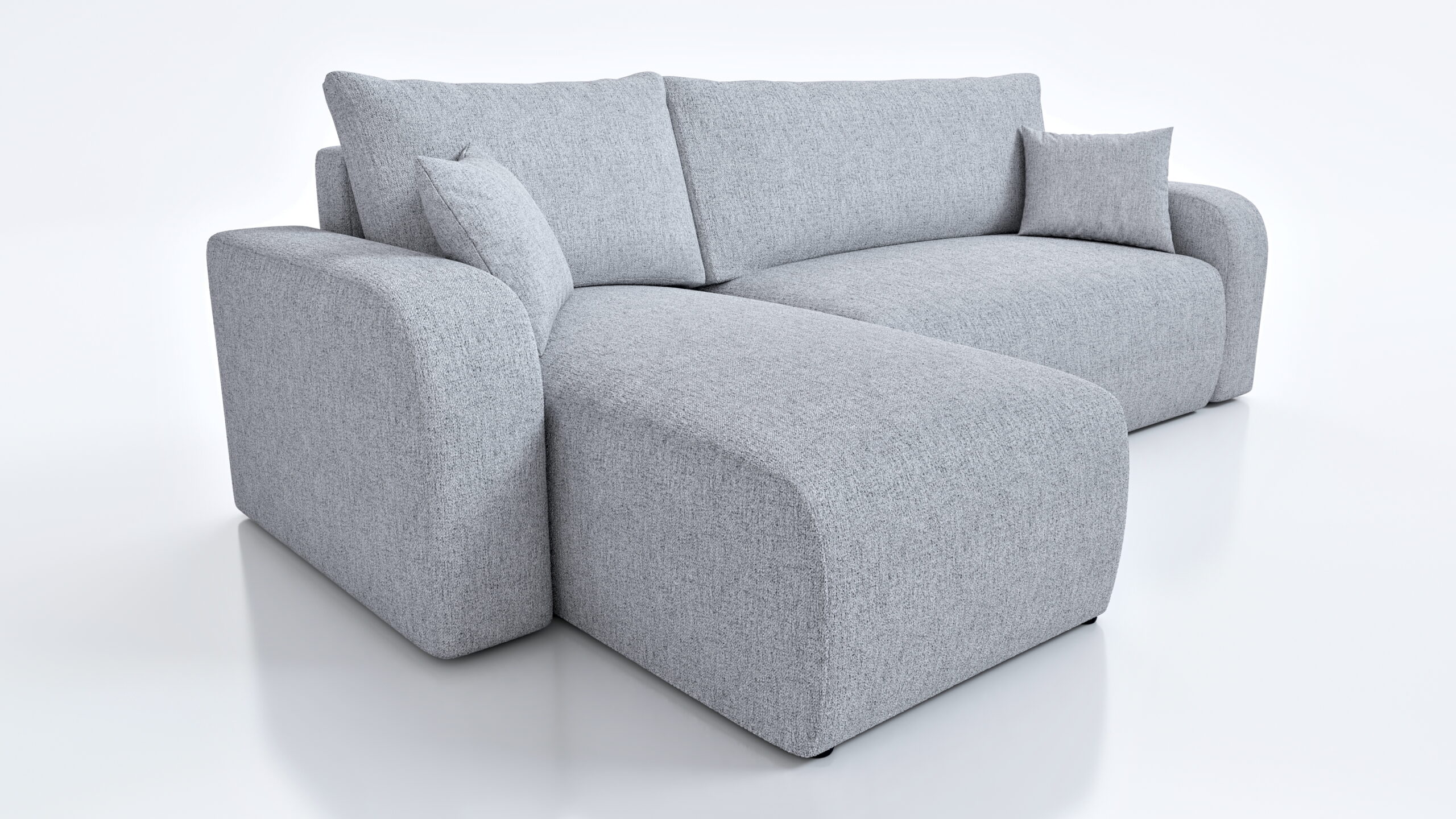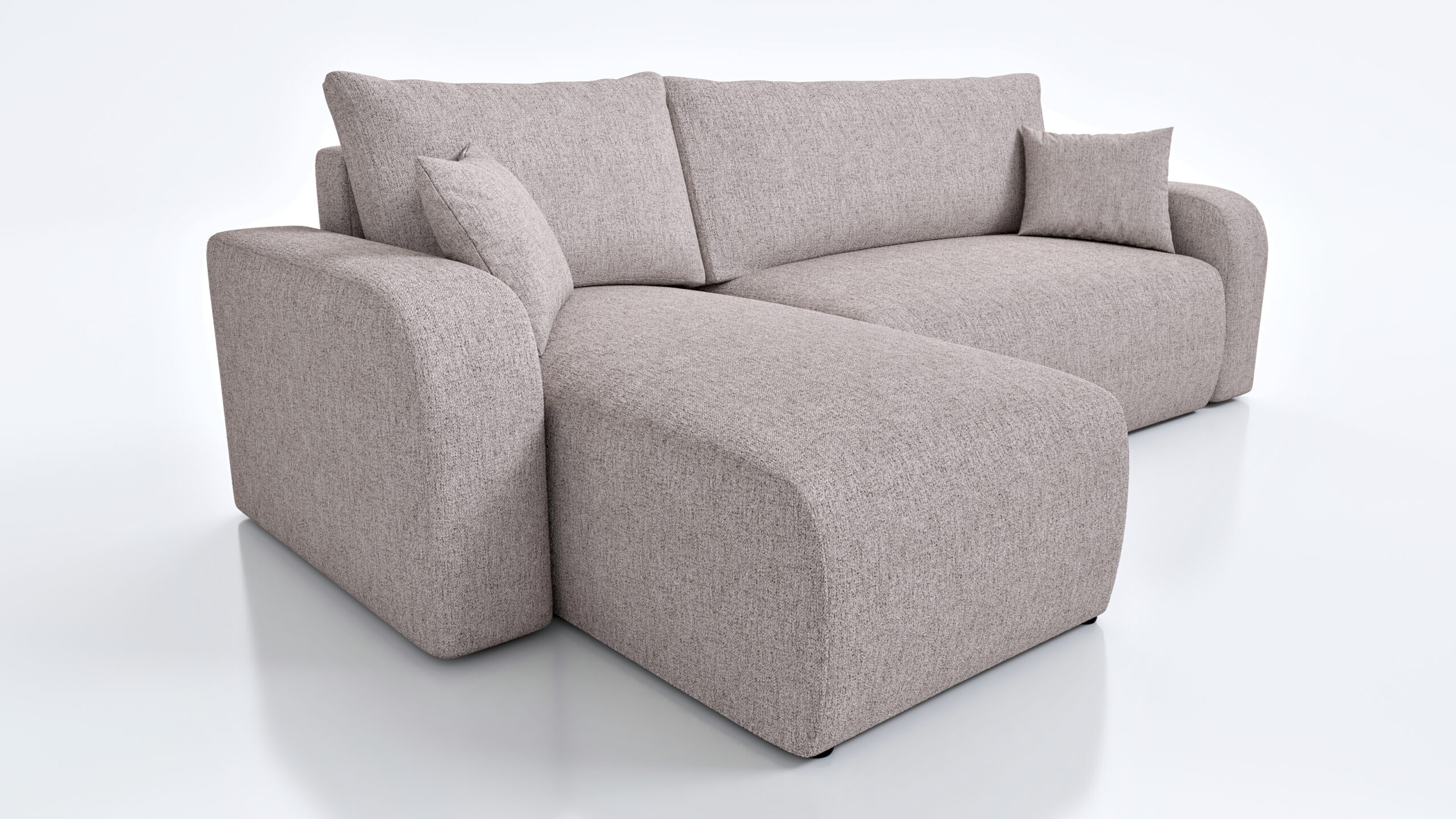 Dzięki rozkładanej funkcji narożnik w prosty sposób zamienia się w wygodne łóżko, zapewniając dodatkowe miejsce do spania dla gości. Dodatkowo pojemnik na pościel pozwala utrzymać porządek i maksymalnie wykorzystać przestrzeń w salonie.