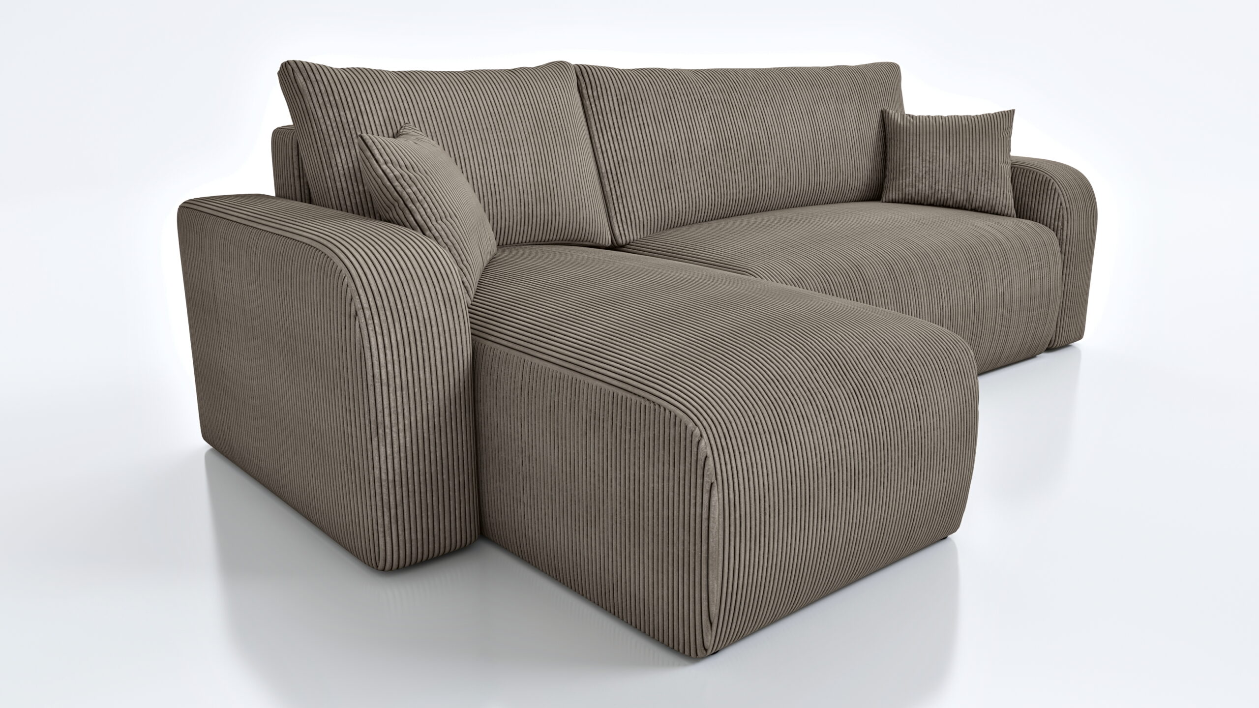 • Nowoczesny design – minimalistyczna forma, delikatne przeszycia i eleganckie wykończenie sprawiają, że narożnik prezentuje się stylowo w każdym salonie.