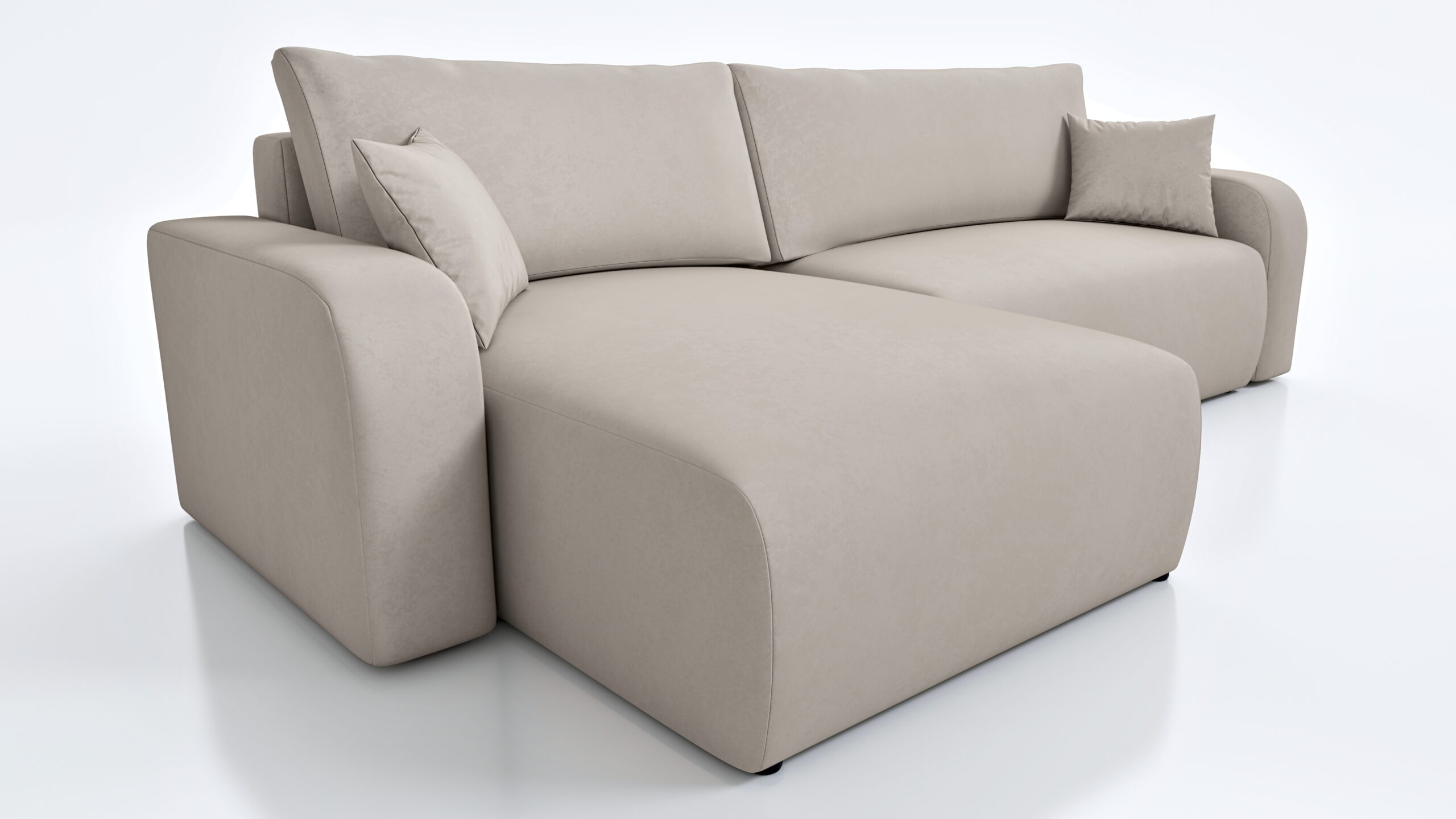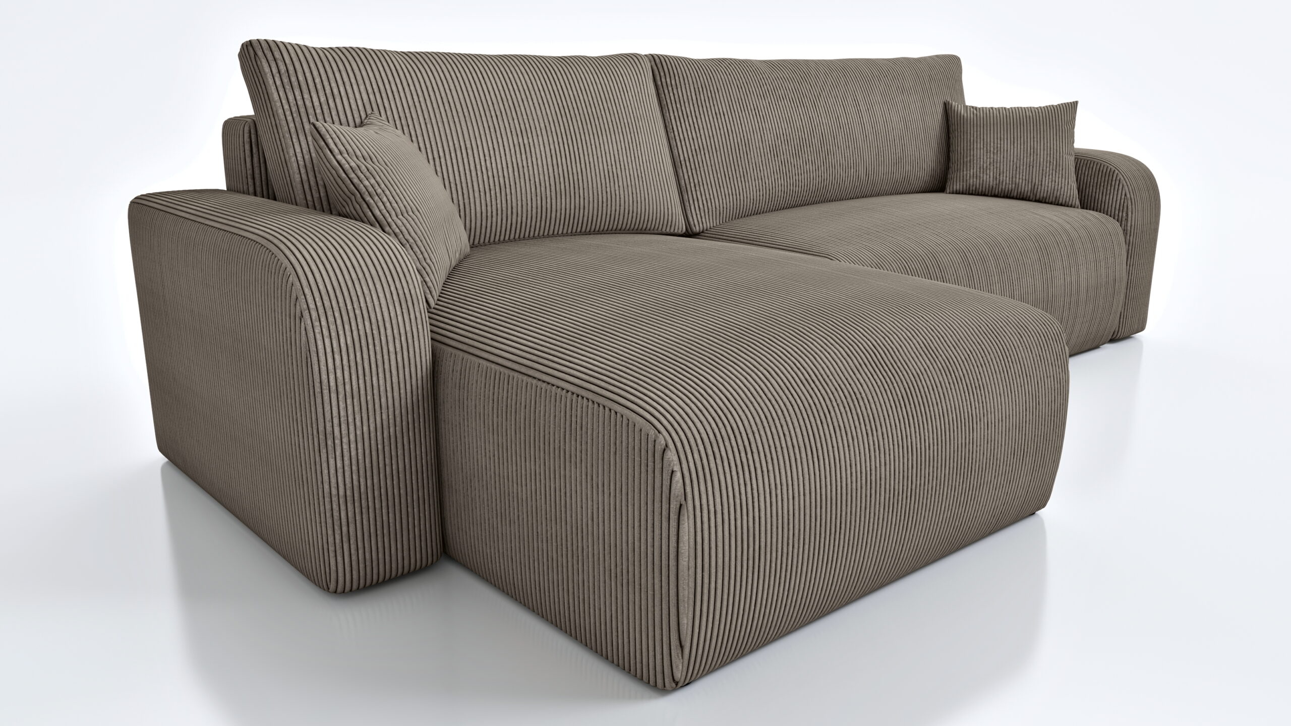 • Nowoczesny design – minimalistyczna forma, delikatne przeszycia i eleganckie wykończenie sprawiają, że narożnik prezentuje się stylowo w każdym salonie.