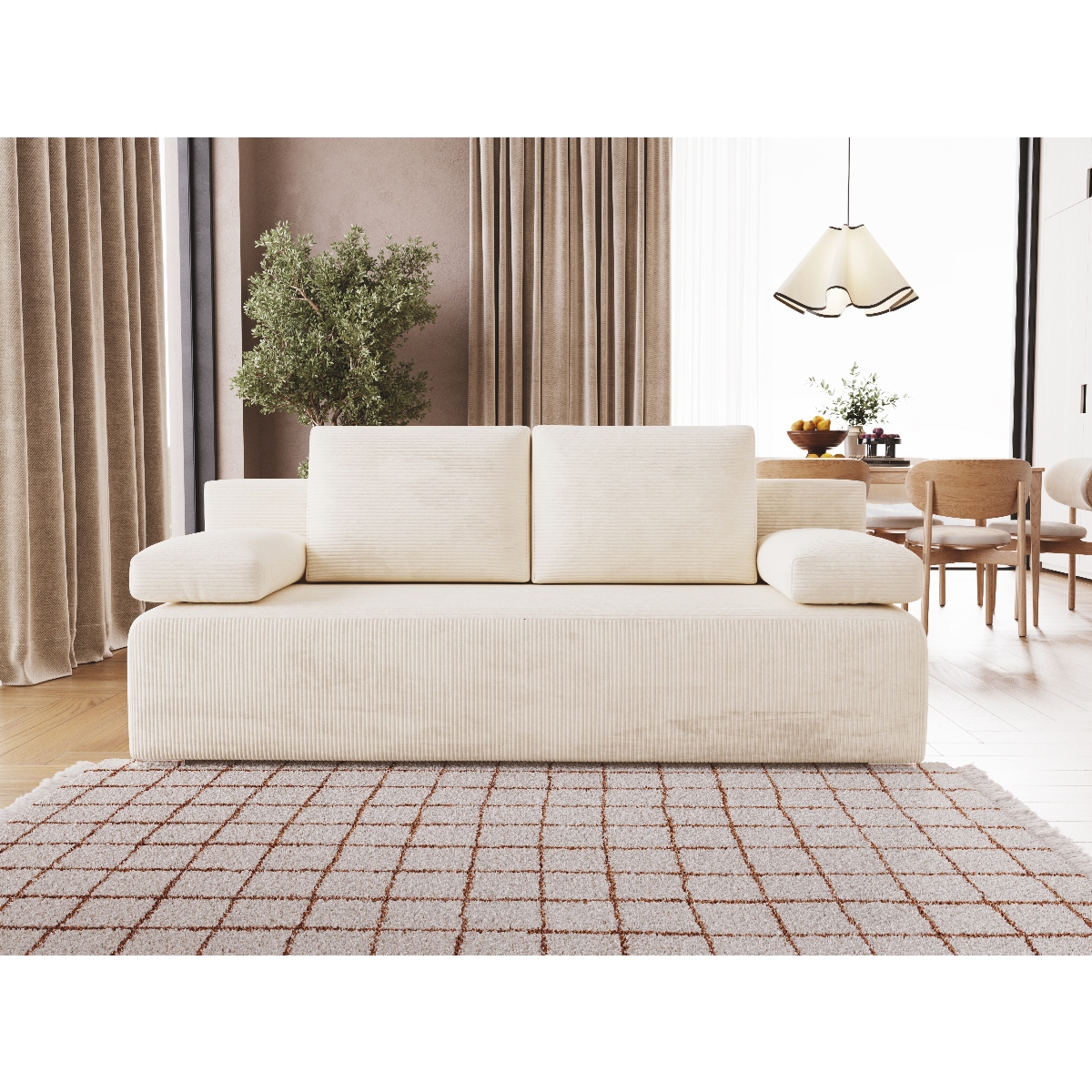 Sofa bez boków ZOCA to nowoczesna, kompaktowa kanapa bez boków, zaprojektowana specjalnie z myślą o niewielkich wnętrzach. Doskonale sprawdzi się w kawalerkach, małych salonach, pokojach młodzieżowych czy gościnnych, oferując wygodne miejsce do codziennego odpoczynku i praktyczną funkcję spania. Mimo swoich niewielkich rozmiarów, ZOCA oferuje wszystko, czego potrzebujesz: rozkładaną powierzchnię spania 137 × 201 cm oraz pojemny schowek na pościel, który pomaga utrzymać porządek w pomieszczeniu.