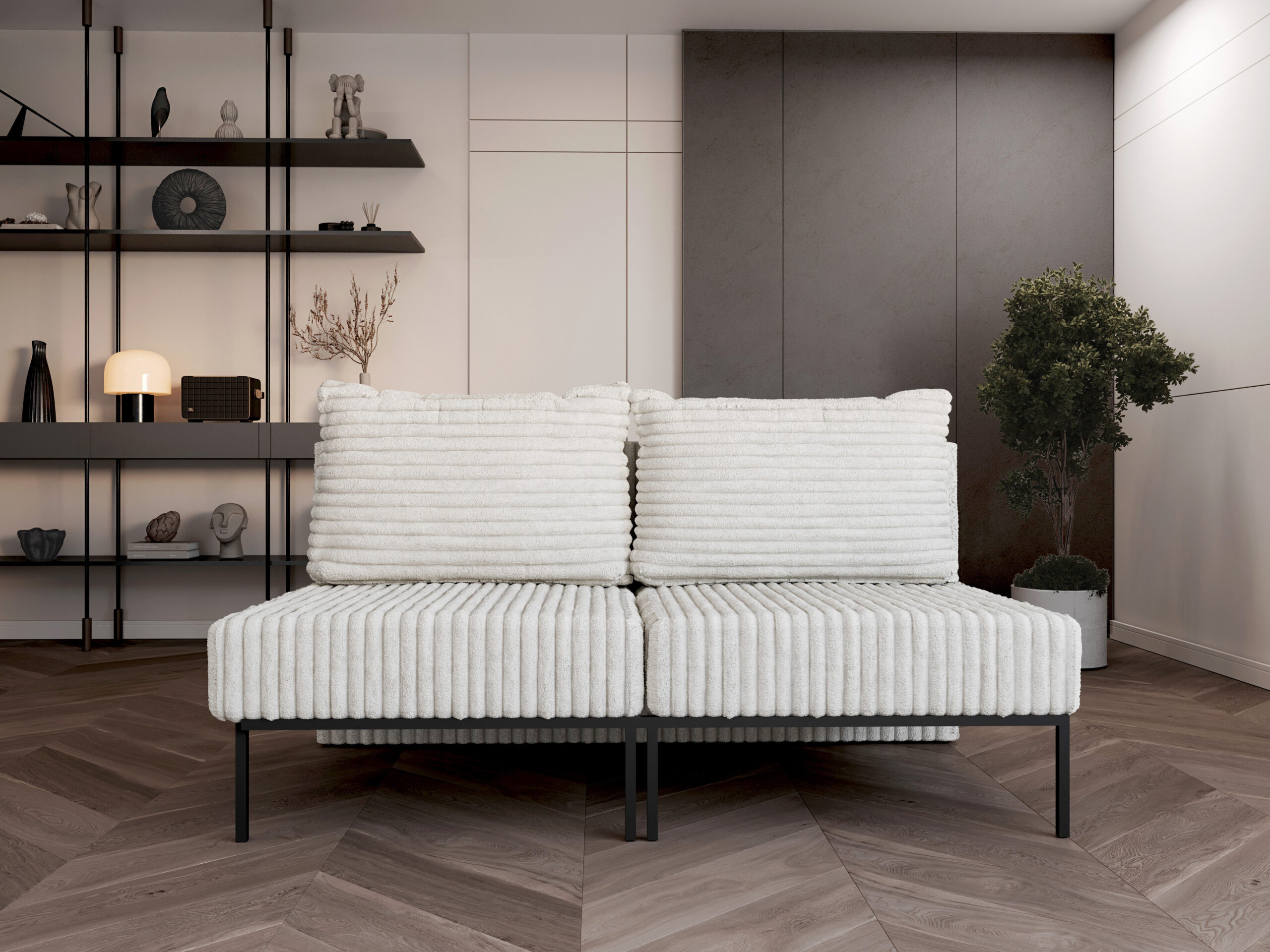 • Wysokie metalowe nogi – nowoczesny wygląd i łatwiejsze utrzymanie czystości pod meblem.