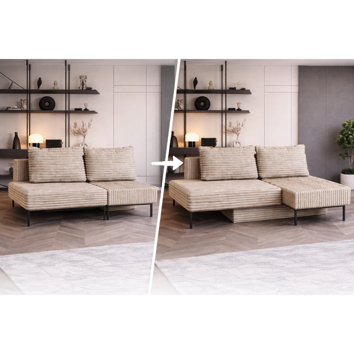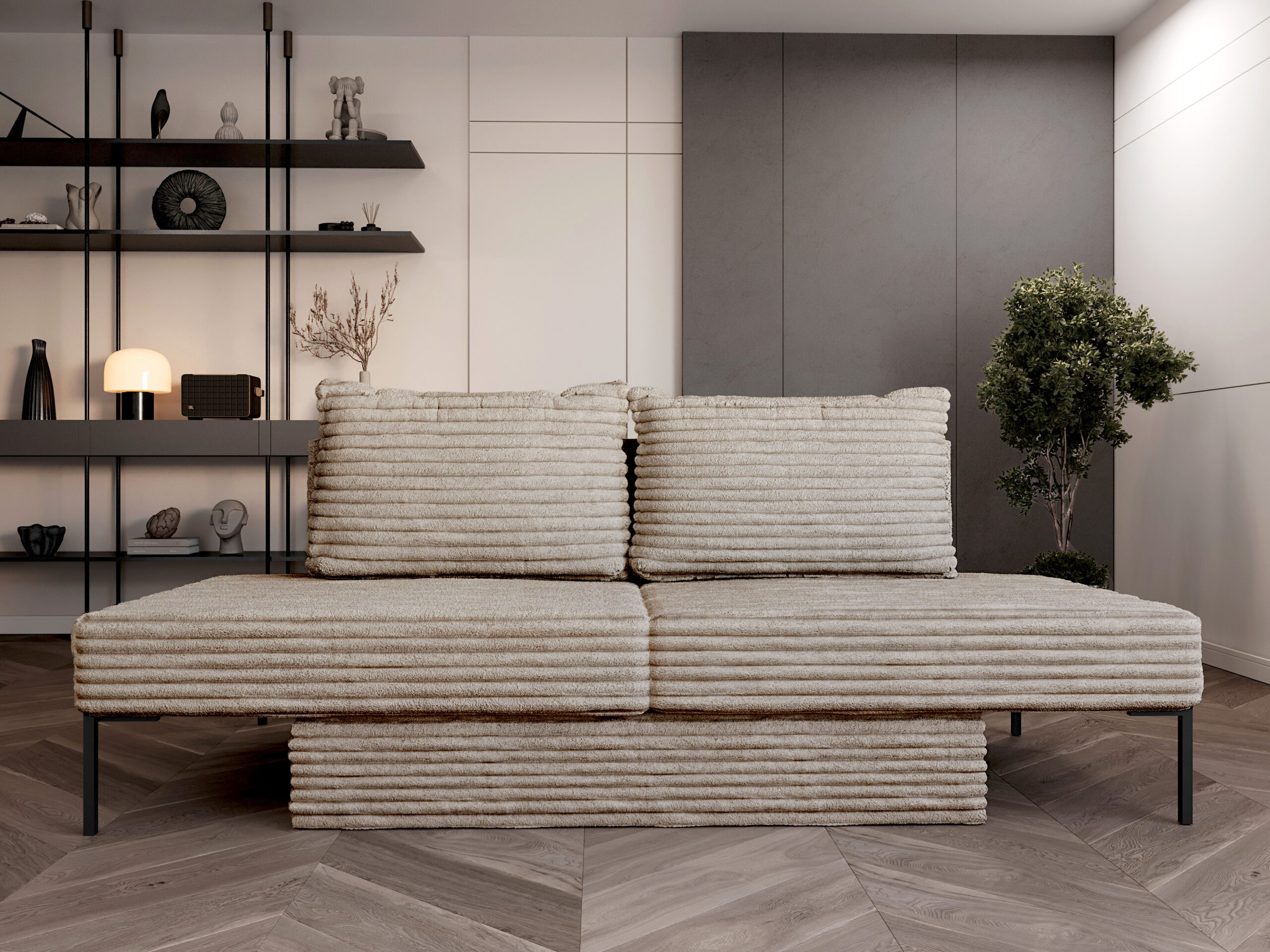 • Cztery konfiguracje w jednym meblu – sofa, narożnik, leżanka lub łóżko – pełna swoboda aranżacji wnętrza.