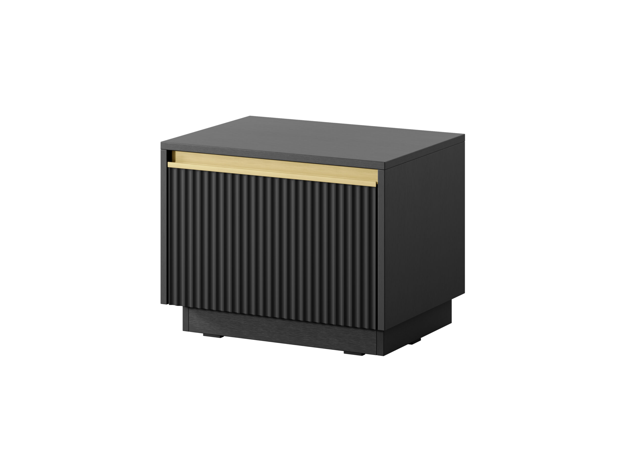 — Stolik nocny ROYAL czarny z ryflowanym frontem i złotym uchwytem —