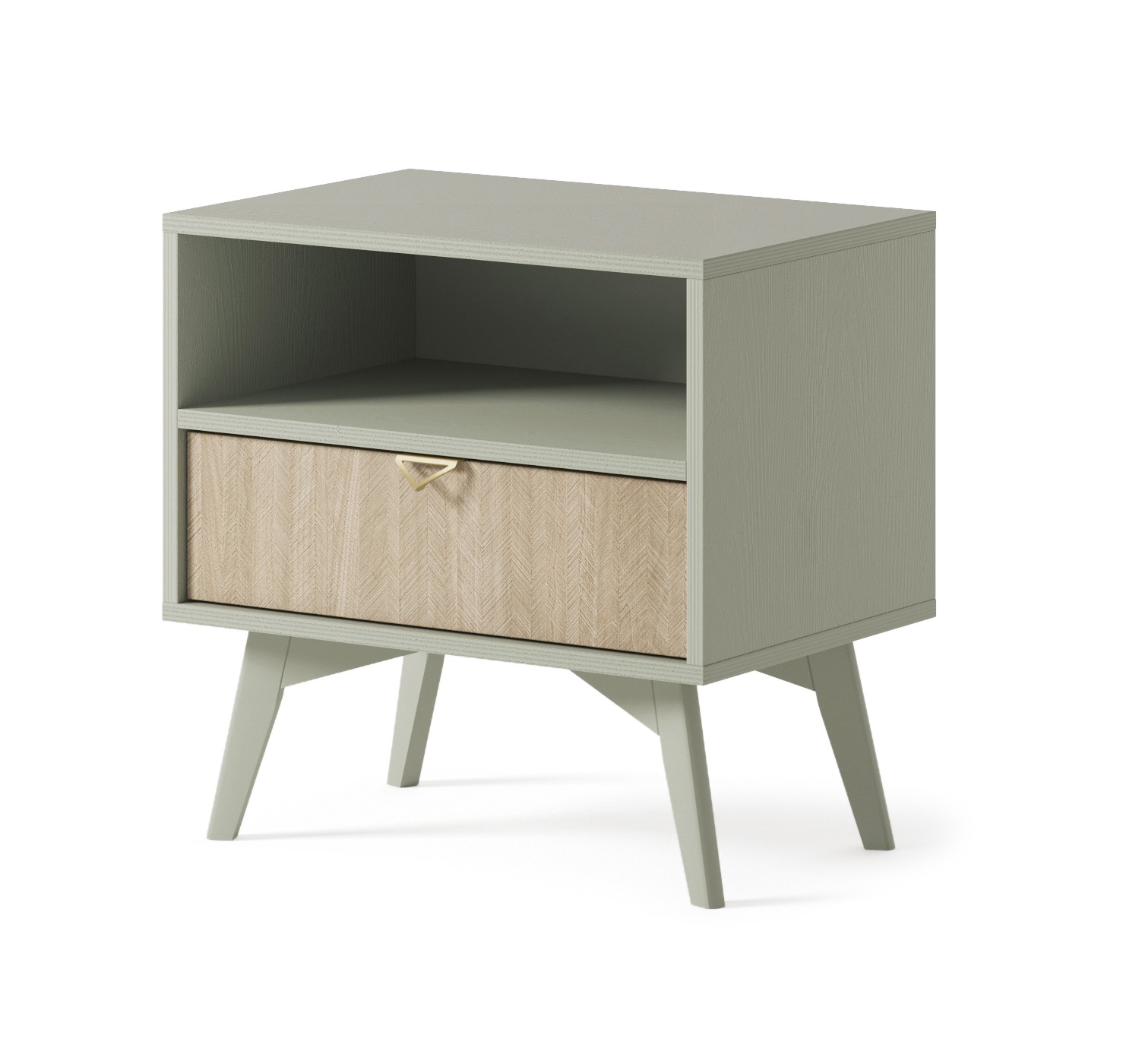 Szafka nocna pistacjowa Stolik nocny FOREST w odcieniu eukaliptusa/pistacji to nowoczesny i funkcjonalny mebel, który doda świeżości i oryginalności Twojej sypialni. Delikatny, pastelowy kolor w połączeniu z eleganckimi złotymi detalami tworzy wyjątkową kompozycję, która rozjaśni wnętrze i nada mu przyjemnej, harmonijnej atmosfery. To idealny wybór dla osób poszukujących mebli łączących niepowtarzalny design, funkcjonalność i solidne wykonanie.